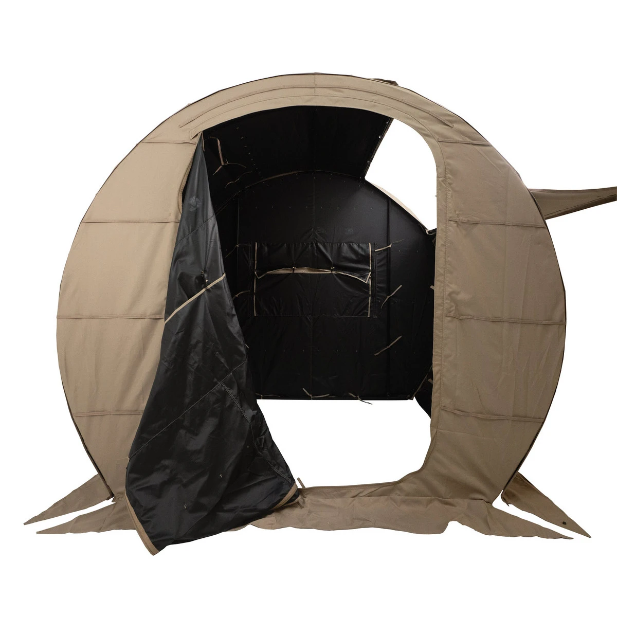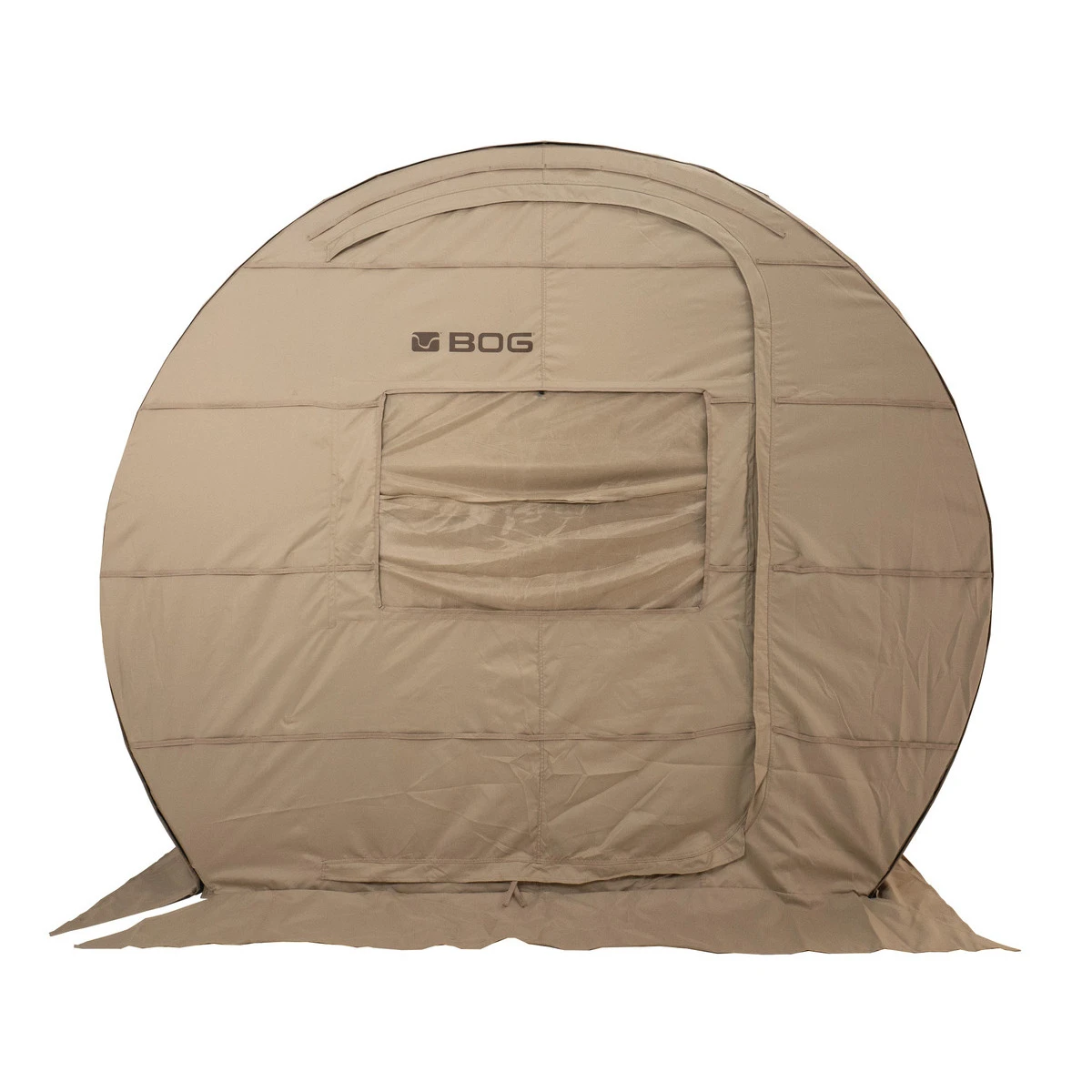 The BOG Haymaker Bale Blind is an open field ninja. With a realistic bale design and 600D field khaki fabric affixed with brush loops, this steel frame blind is designed to blend right away into hay fields and cut corn settings. The silent, 4-sided curtain windows feature StealthTrac window technology for silent and easy window adjustment. The Hay Bale Blind also features a user-friendly trap waterfowl door that keeps you hidden until the right moment.