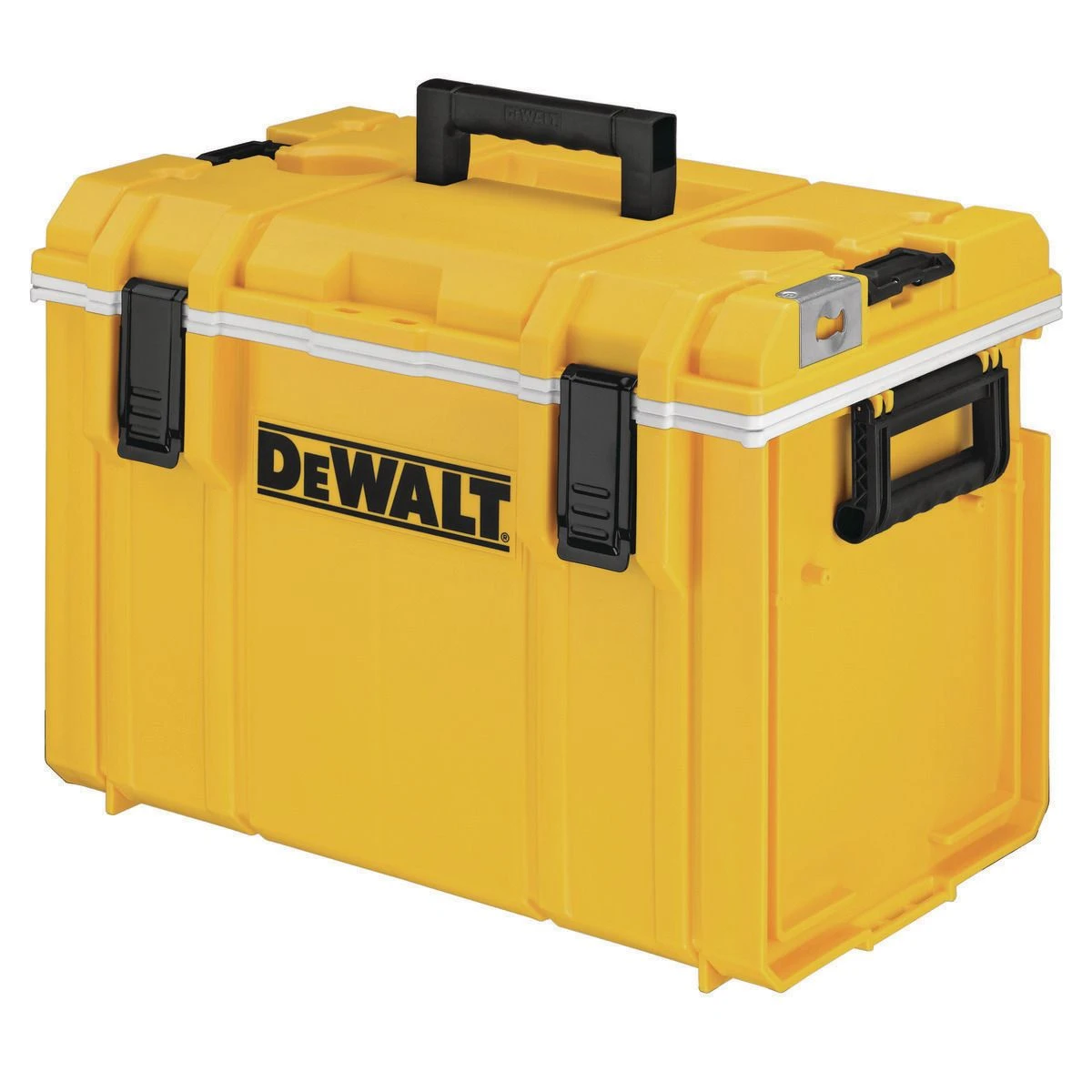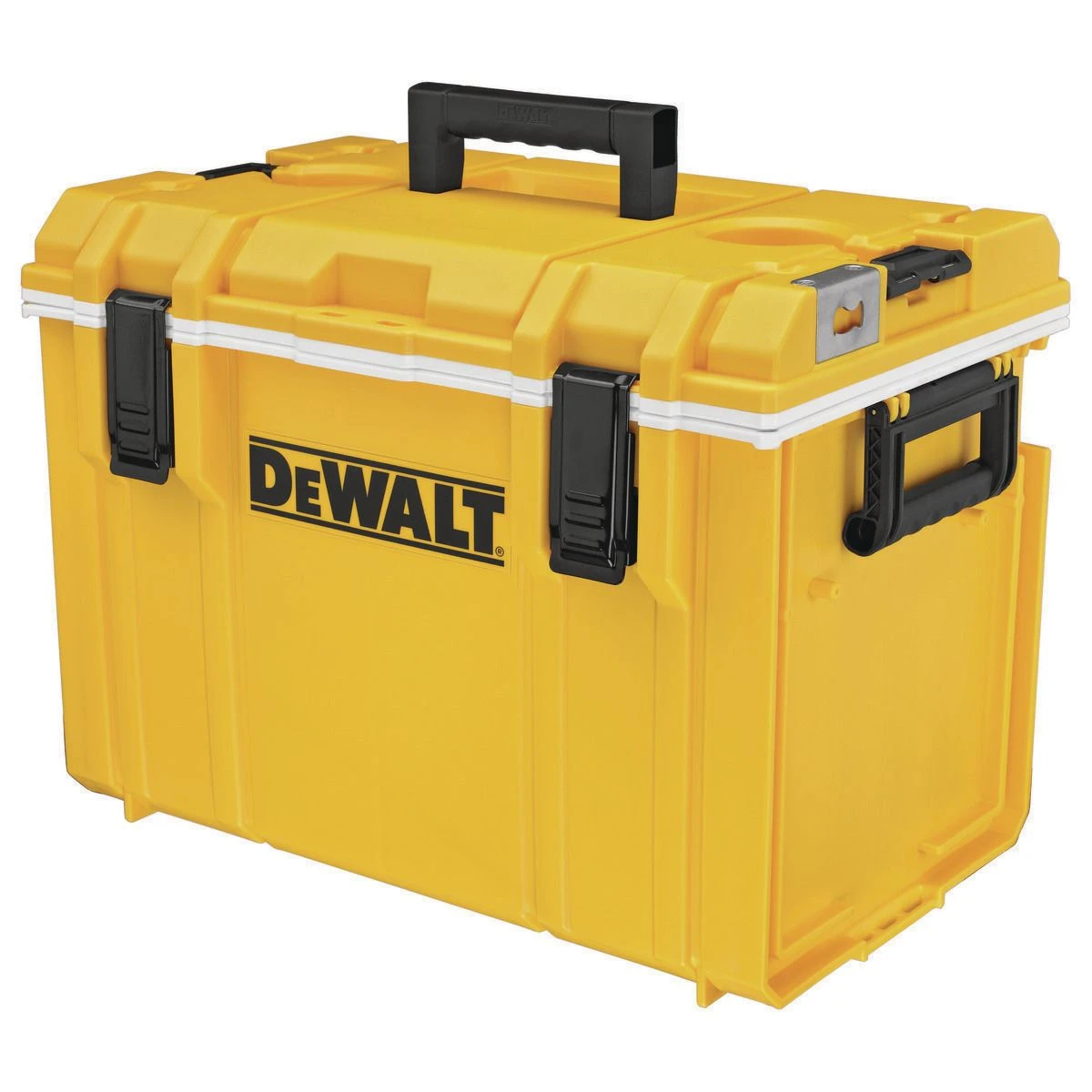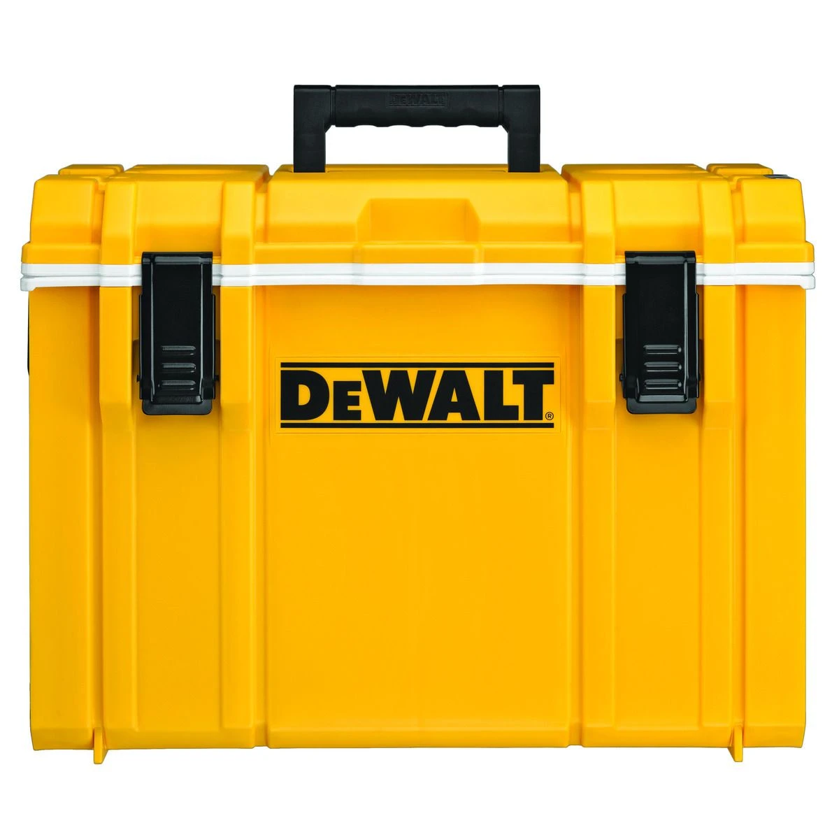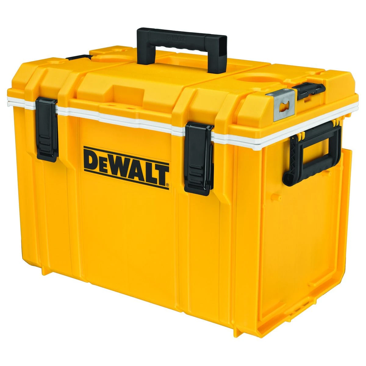With extensive storage space of 25.5 liters, 5 days ice retention, and IP65 rating for protection against water and dust, this DEWALT ToughSystem Cooler keeps beverages ice-cold and refreshing, no matter the external conditions. The cooler can be stacked to any other ToughSystem module using the side latches, and is compatible with the ToughSystem Trolley, our Van Racking, and Workshop Racking for ultimate stability and security during transit.With extensive storage space of 25.5 liters, 5 days ice retention, and IP65 rating for protection against water and dust, this DEWALT ToughSystem Cooler keeps beverages ice-cold and refreshing, no matter the external conditions. The cooler can be stacked to any other ToughSystem module using the side latches, and is compatible with the ToughSystem Trolley, our Van Racking, and Workshop Racking for ultimate stability and security during transit.