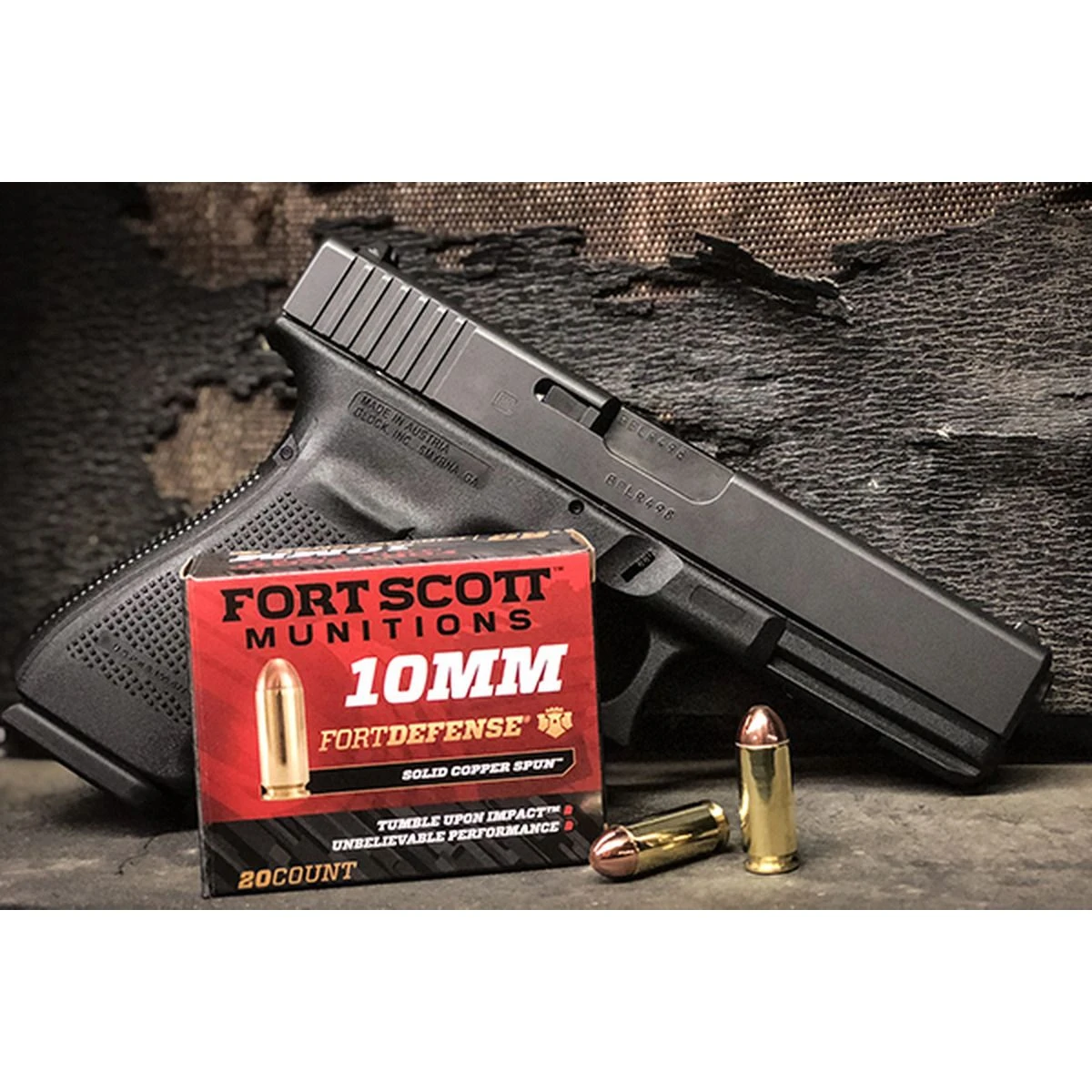 Fort Scott Munitions 10MM TUI ammo is a match grade handgun ammunition that is designed to be extremely accurate at high velocities. The unique, patented design of our 10MM TUI pistol ammunition penetrates targets deeply and leaves behind a devastating dynamic wound cavity.