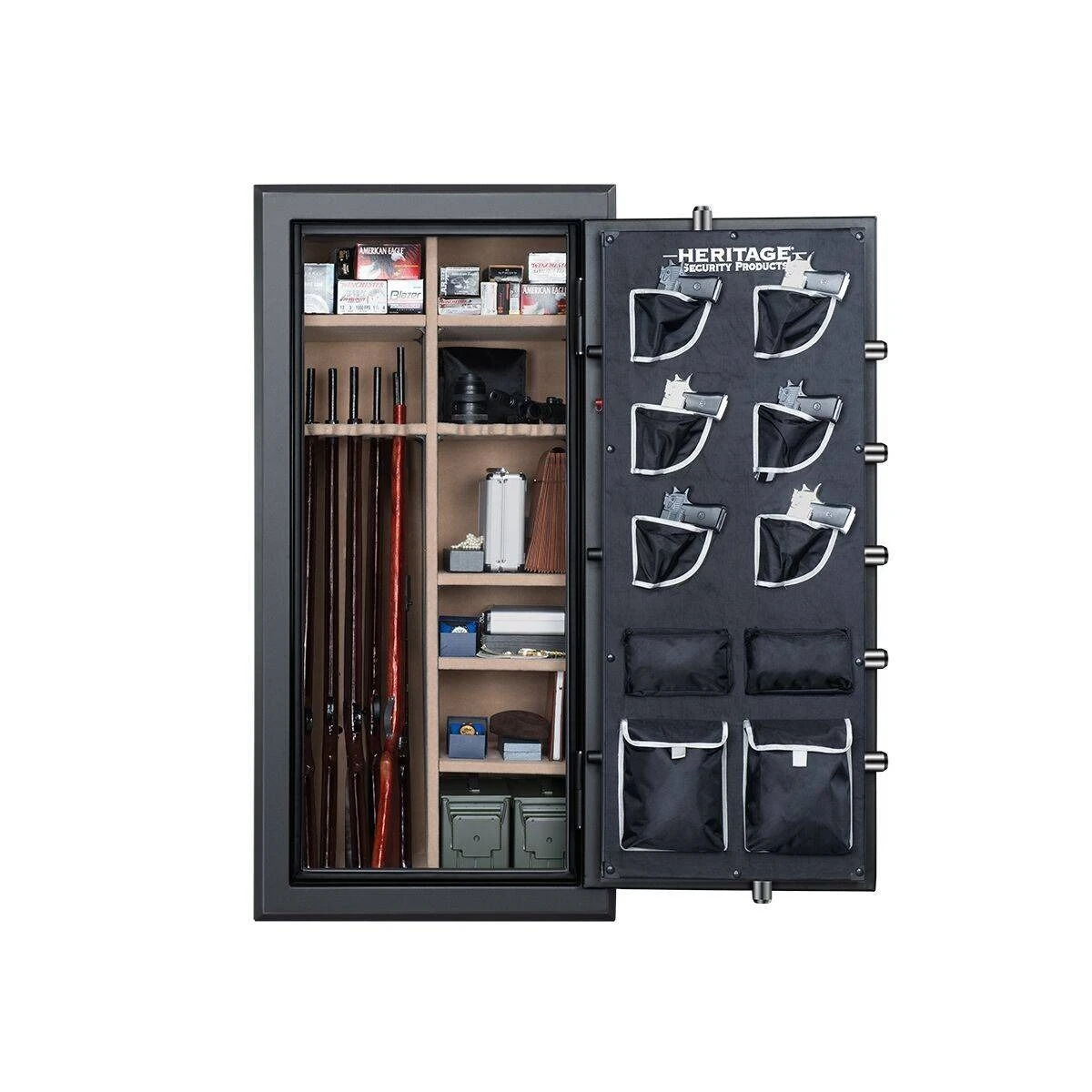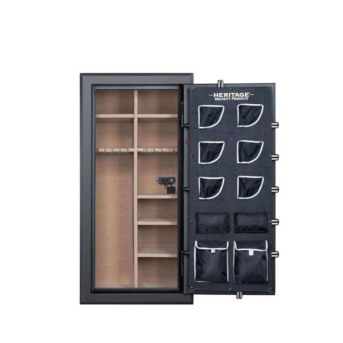 This Heritage 40 Gun Safe is built with you in mind and provides the best value in the market for a long gun fire and water safe. It has a fire rating of 1400 degrees Fahrenheit for 75 minutes and is waterproof up to 2 feet of water for 72 hours. It features an electronic lock with Alarm U Feature and mechanical key. All Heritage Gun Safes offer extra protection with recessed doors and tapered bolts for increased pry resistance. No thief can walk away with your safe because it includes a heavy-duty bolt-down kit. With Heritage, you’re truly protected.